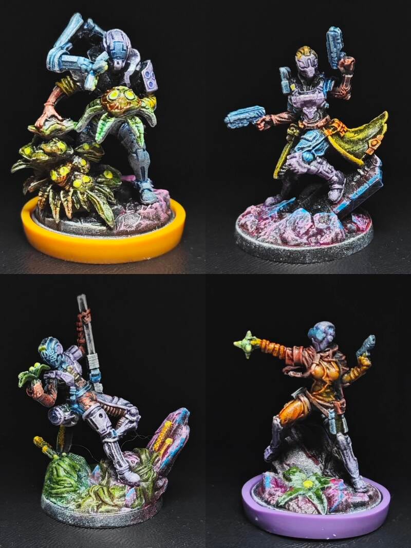 ISS Vanguard; Verlag Awaken Realms; Spielerfiguren im eigenen Design mit fluoreszierenden Tinten und verschiedenen Metallic-Acrylfarben